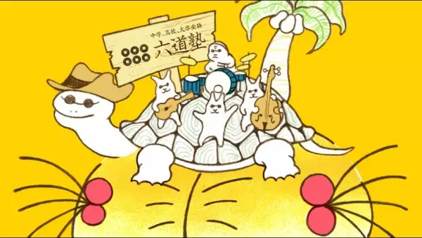A televised commercial for Rokudou Juku, a cram school in the Nerima Ward of Tokyo.